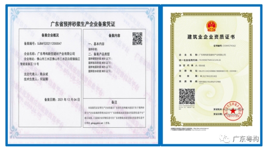 2月18日,广东粤构新型建材产业有限公司成功取得《预拌混凝土资质证书》,预计将于2022年10月全面生产。
