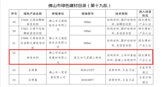 4月28日,恒益环保建材顺利通过《佛山市绿色建材目录》评审,标志着公司生产的蒸压加气混凝土砌块符合佛山气候特点、建筑特点的建材标准。