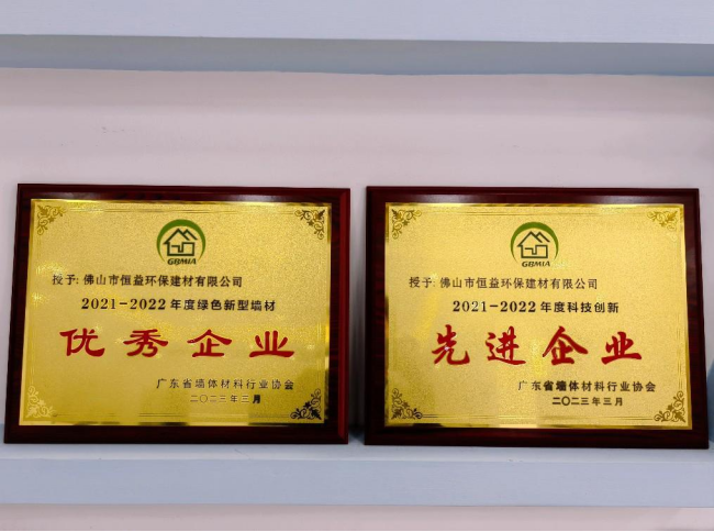 近日,经广东省墙体材料行业协会评选,佛山市恒益环保建材有限公司荣获“2021-2022年度绿色新型墙材优秀企业”“2021-2022年度科技创新先进企业”荣誉称号。张智峰同志获“2021-2022年度墙体材料行业先进工作者”称号。