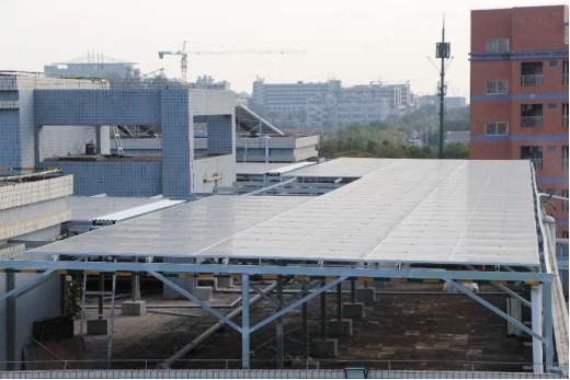 项目利用企业厂房闲置屋顶,通过镀锌钢搭棚方式在水泥屋面上安装光伏电站。在项目建设过程中,我们对屋面进行结构加固,对屋面防水层进行有效保护和修复。此外,光伏电站还降低屋面温度,大大降低了厂房空调能耗。
